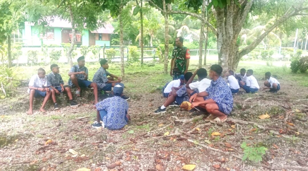 SWANDIWE – Babinsa Koramil 1708-03/Biak Barat, Swaipak, Serka Yairus Arwam melaksanakan kegiatan komunikasi sosial (komsos) bersama siswa-siswi SMP Negeri (SMPN) 3 Swaipak di wilayah binaannya di Kampung Swaipak, Distrik Swandiwe, Kabupaten Biak Numfor, Papua, Rabu (21/1/2026).