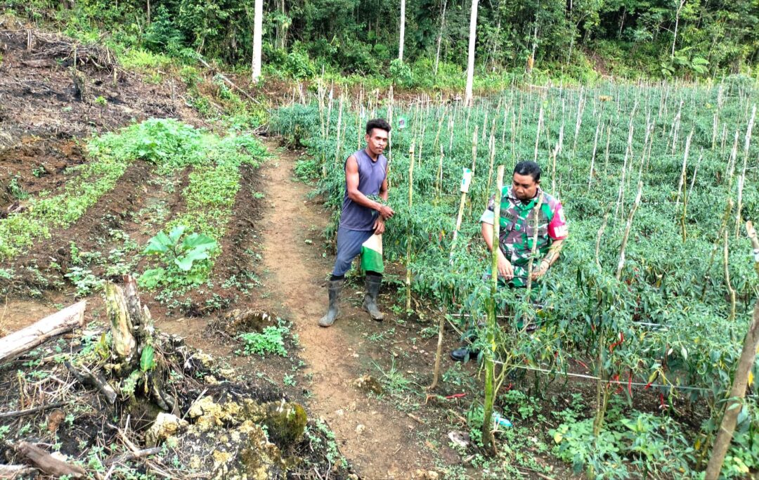 BIAK BARAT – Sebagai wujud kepedulian dan tanggung jawab terhadap warga binaannya, Babinsa Koramil 1708-03/BB, Sertu Basir turun langsung ke lapangan untuk memantau kondisi kebun milik Abraham Burdam di Kampung Sosmai, Distrik Biak Barat, Kabupaten Biak Numfor, Papua, Selasa (7/10/2025).