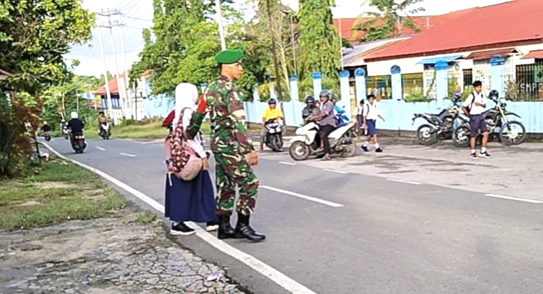Selain membantu penyeberangan, Babinsa juga mengimbau para pengendara agar lebih berhati-hati dan mengutamakan keselamatan anak-anak sekolah saat melintas di kawasan tersebut.