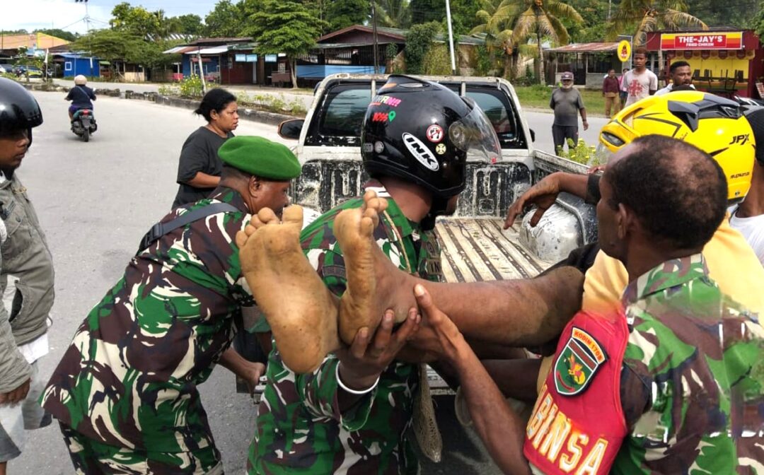 BIAK – Babinsa Koramil 1708-01/Biak Kota, Serka Suruan bersama empat orang anggota bantu dengan sigap mendatangi lokasi kejadian kecelakaan tunggal lakalantas sepeda motor di Jalan Sriwijaya depan Kantor DPR Kabupaten Biak Numfor, Papua, Senin (29/12/2025).
