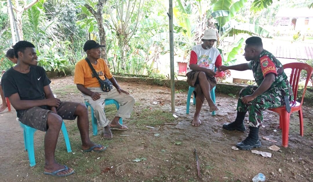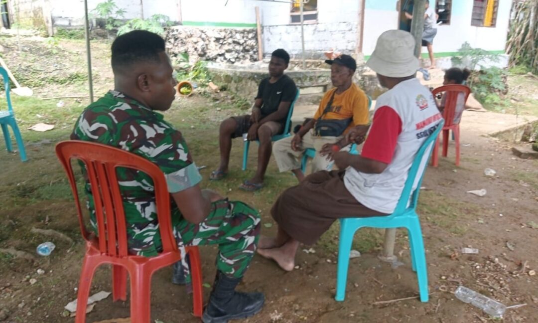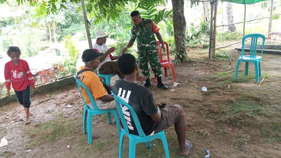 BIAK UTARA – Babinsa Koramil 1708-02/Biak Utara, Serda Alfret Foom melaksanakan kegiatan komunikasi sosial (komsos) bersama masyarakat di Kampung Mambesak, Distrik Biak Utara, Kabupaten Biak Numfor, Papua, Minggu (14/12/2025).