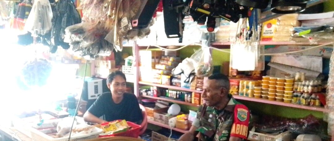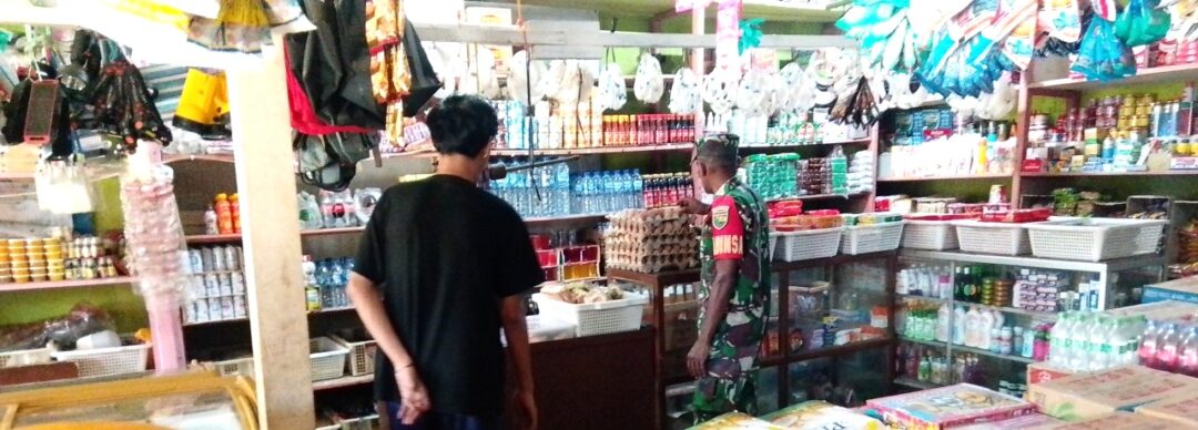 SUPIORI – Dalam rangka menjaga stabilitas harga bahan pokok, Babinsa Koramil 1708-04/Supiori Selatan Serka Falentinus Warfandu melaksanakan pemantauan wilayah dengan menyambangi pemilik toko sembako Ibu Hj. Suharipa di Desa Fanindi, Distrik Supiori Selatan, Kabupaten Supiori, Papua, Selesa (21/4/2026).