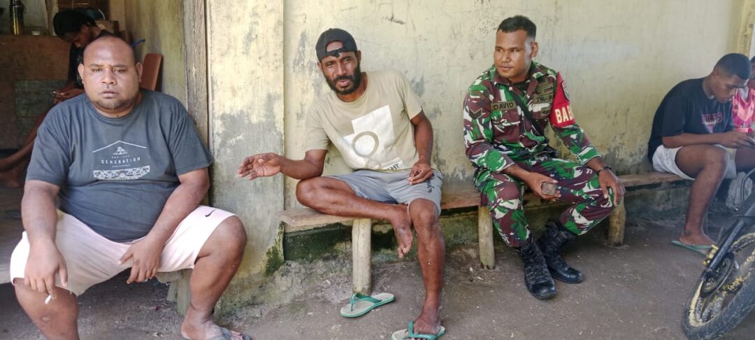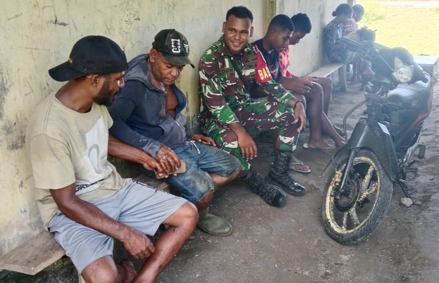 Sertu David Mnsen silaturahmi ke masyarakat Kampung Maniri untuk mempererat silaturahmi. (Foto: Penerangan Kodim 1708/BN)