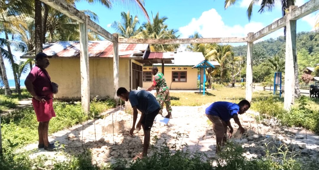 TWARSA – Wujud kepedulian terhadap masyarakat terus ditunjukkan Babinsa Posramil 1708-02/BU-Warsa, Praka Thomas Natai melalui kegiatan bakti TNI membantu renovasi pasar warga di Kampung Karuiberik, Distrik Warsa, Kabupaten Biak Numfor, Papua, Minggu 26/4/2026).