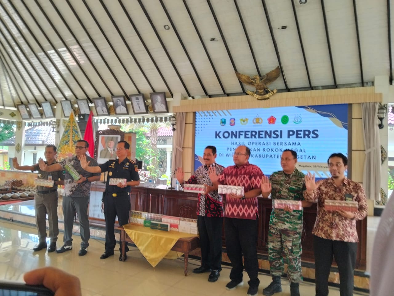 Magetan – Bea Cukai Madiun dan Satuan Polisi Pamong Praja (Satpol-PP) dan Pemadam Kebakaran (Damkar) Magetan juga tim berhasil menyita ribuan barang rokok ilegal, Hal ini pemerintah kabupaten Magetan menggelar Konferensi pers yang di gelar di Pendopo Surya graha pada Jumat 28/02/2025
