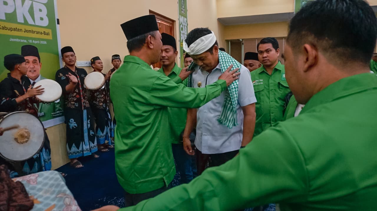 Jembrana – Bupati Jembrana, I Made Kembang Hartawan, menghadiri pembukaan Musyawarah Cabang (Muscab) Partai Kebangkitan Bangsa (PKB) Kabupaten Jembrana yang digelar di Ballroom Gedung Kesenian Ir. Soekarno, Sabtu (18/4/2026). Dalam momen tersebut, Bupati menegaskan pentingnya sinergi lintas partai demi kemajuan daerah.