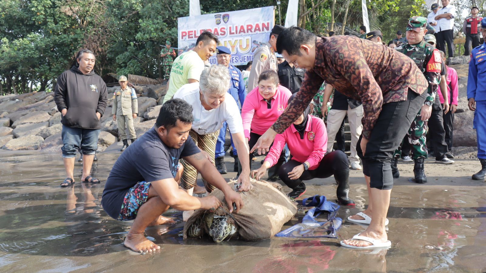 Jembrana – Pemerintah Kabupaten (Pemkab) Jembrana menunjukkan komitmen penuh dalam pelestarian satwa laut, khususnya penyu yang merupakan salah satu satwa dilindungi dan banyak ditemukan di perairan Jembrana. Pada Selasa (18/3/2025), lima ekor penyu hijau yang sebelumnya diamankan oleh polisi dari kasus penyelundupan di Pesisir Pantai Teluk Gilimanuk, Kelurahan Gilimanuk, Kecamatan Melaya, Kabupaten Jembrana, dilepasliarkan ke habitat alaminya. Pelepasan ini dilakukan oleh Bupati Jembrana I Made Kembang Hartawan bersama Kapolres Jembrana, AKBP Endang Tri Purwanto.