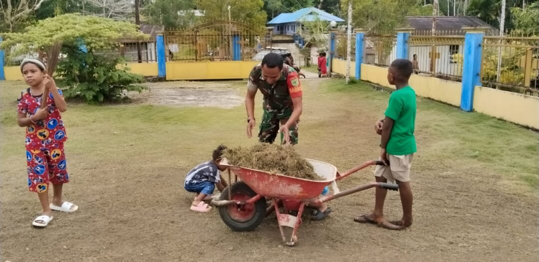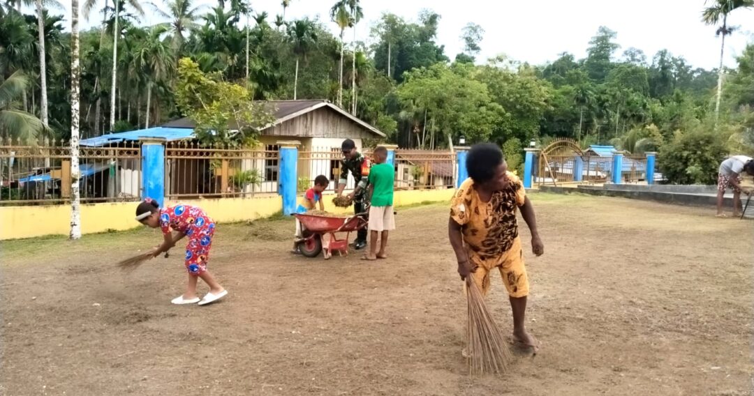 BIAK TIMUR – Sebagai bentuk kepedulian terhadap kebersihan lingkungan dan tempat ibadah, Babinsa Posramil 1708-01/Biak Timur, Serda Aljabar Mansoben bersama Kopka Yosep K. Silaka menggelar kegiatan gotong-royong membersihkan halaman Gereja GKI Betesda Sundey di Kampung Sundey, Distrik Biak Timur, Kabupaten Biak Numfor, Papua, Selasa (24/3/2026).