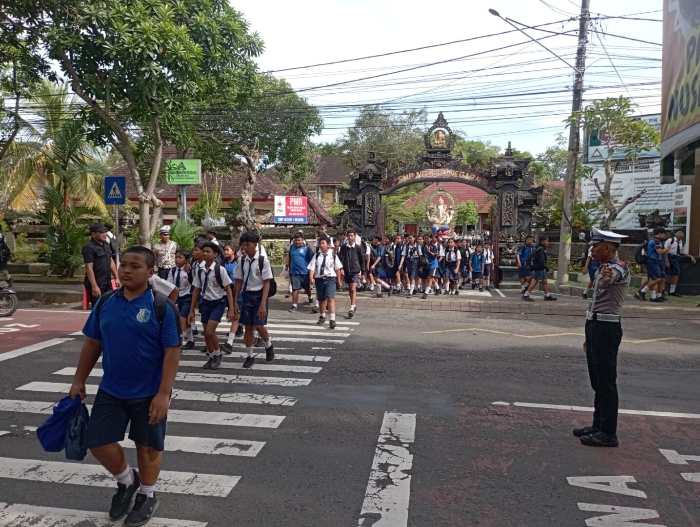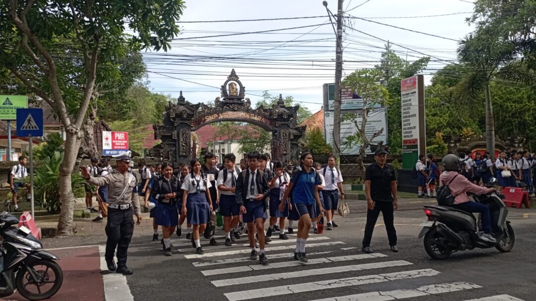 Jembrana – Untuk menjamin keselamatan siswa serta kelancaran arus lalu lintas, Satuan Lalu Lintas Polres Jembrana melakukan pengamanan dan pengaturan lalu lintas di depan SMPN 1 Negara, Jalan Ngurah Rai, Selasa (15/4/2025) sore. Kegiatan ini berlangsung saat jam bubaran sekolah.
