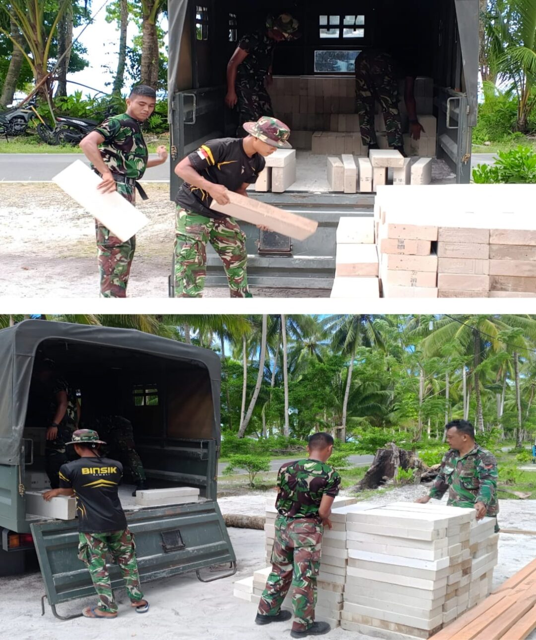 BIAK UTARA – Untuk memastikan pekerjaan berjalan sesuai target, Satgas TMMD ke-128 Kodim 1708/BN melaksanakan pendropan bahan bangunan ke lokasi kegiatan di Kampung Sansundi, Distrik Bondifuar, Kabupaten Biak Numfor, Papua, Rabu (29/4/2026).