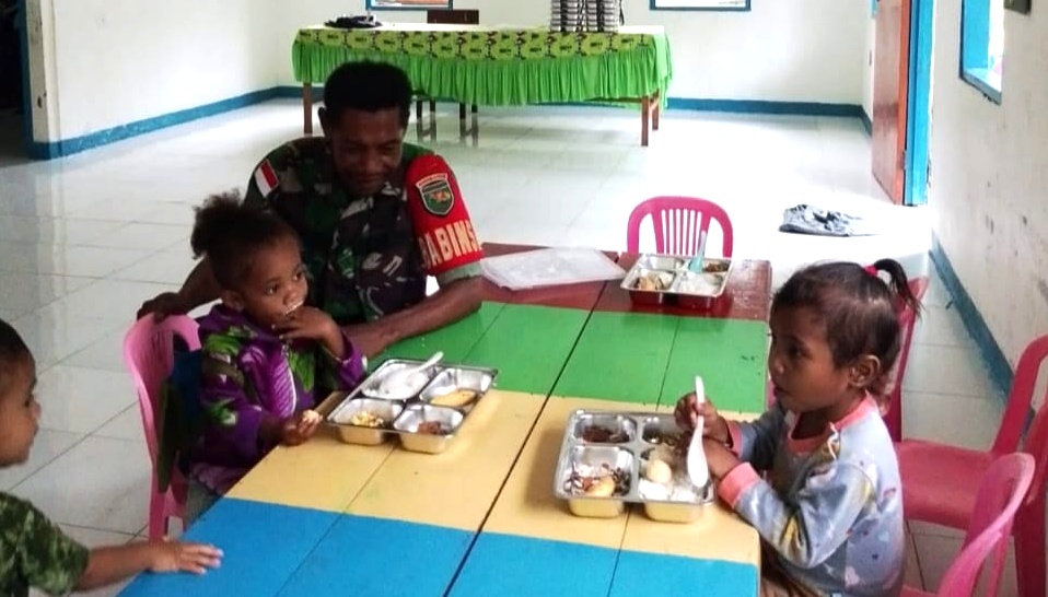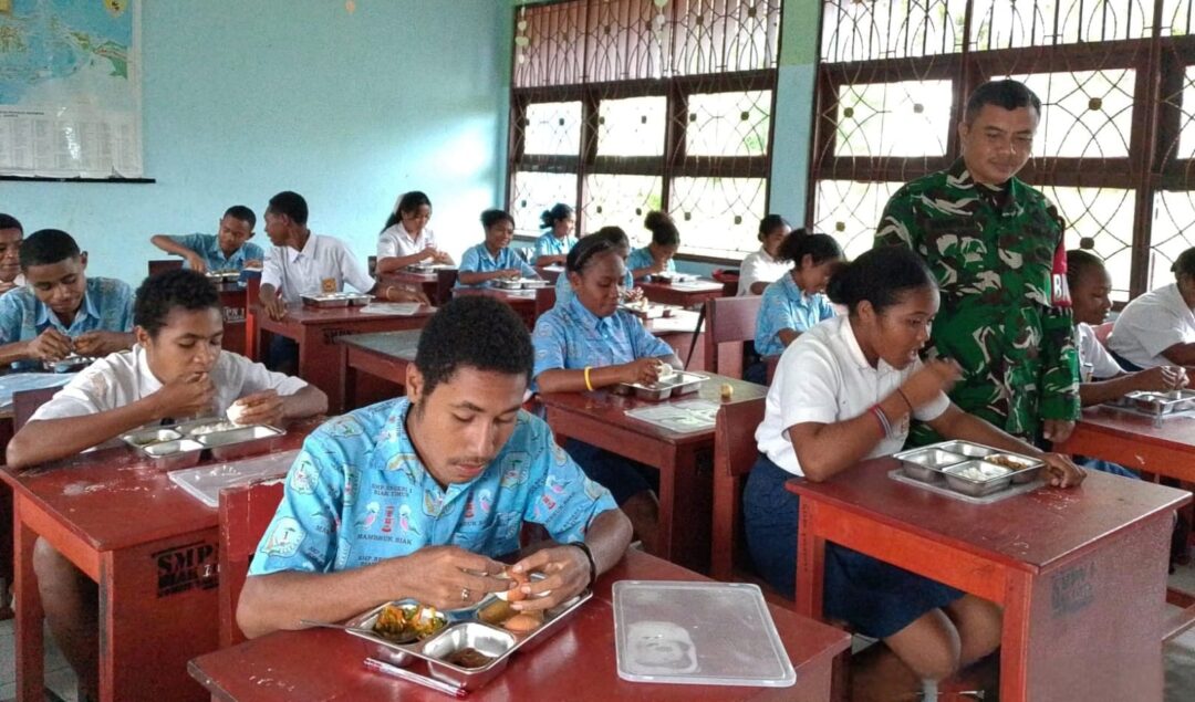 Babinsa yang terlibat dalam kegiatan ini, yaitu Sertu Petrus Mandosir, Sertu Wahyu Hendro Patrias Setiawan, dan Kopka Absalom Dimara. Mereka turun langsung memastikan pembagian berjalan tertib dan setiap siswa menerima makanan sesuai jumlah yang ditetapkan.