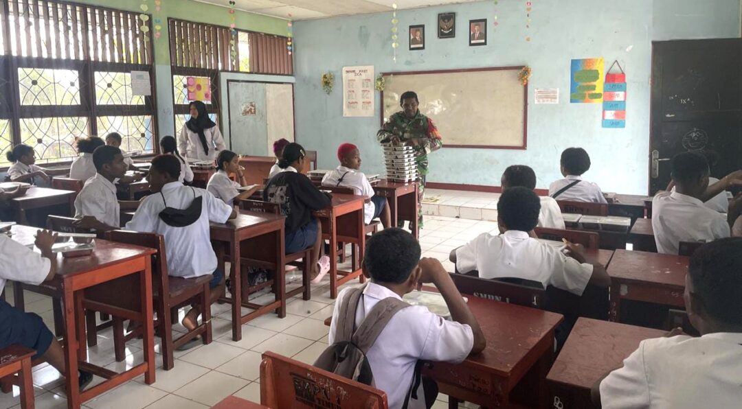 BIAK TIMUR – Dalam rangka mendukung upaya peningkatan gizi anak sejak usia dini, Babinsa Koramil 1708-01/Biak Kota, Posramil 01 Biak Timur melaksanakan pendampingan pendistribusian Program Makan Bergizi Gratis (MBG) di sejumlah sekolah di Distrik Biak Timur, Kabupaten Biak Numfor, Papua, Senin (15/12/2025).