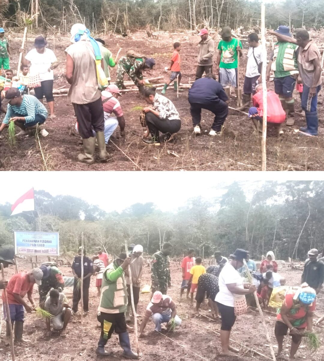 Kegiatan tersebut, turut melibatkan Satgas Hanpangan Swasembada Kabupaten Biak Numfor serta masyarakat setempat yang dengan penuh semangat bergotong-royong mengolah lahan dan menanam padi.