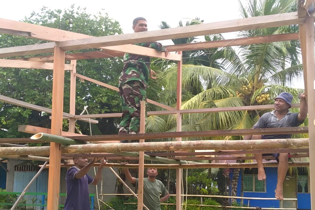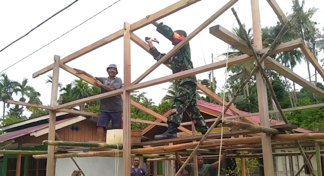 WARSA – Kedekatan TNI dengan masyarakat kembali terlihat melalui aksi nyata Babinsa Posramil 1708-02/Biak Utara-Warsa Serma Saharudding bantu warga membangun pondok milik Andreas Krisifu di Kampung Karuiberik, Distrik Warsa, Kabupaten Biak Numfor, Papua, Sabtu (7/2/2026).