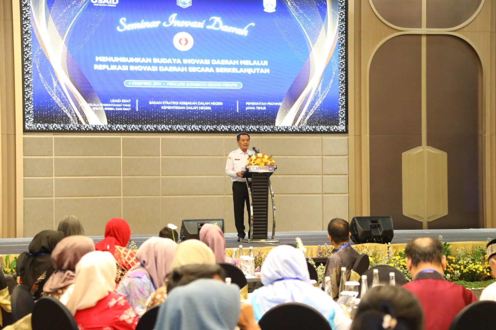Surabaya, nirmedia.co – Kepala Badan Strategi Kebijakan Dalam Negeri (BSKDN) Kementerian Dalam Negeri Yusharto Huntoyungo menegaskan replikasi inovasi daerah memegang peranan penting dalam mempercepat pembangunan berkelanjutan. Hal itu disampaikan dalam Seminar Nasional Menumbuhkan Budaya Inovasi Daerah melalui Replikasi Inovasi Daerah Secara Berkelanjutan yang berlangsung di Grand Ballroom Hotel Mercure Surabaya pada Rabu, 4 Desember 2024.