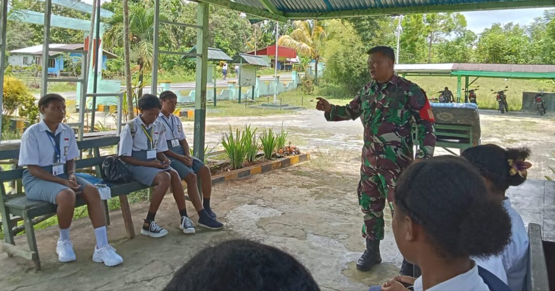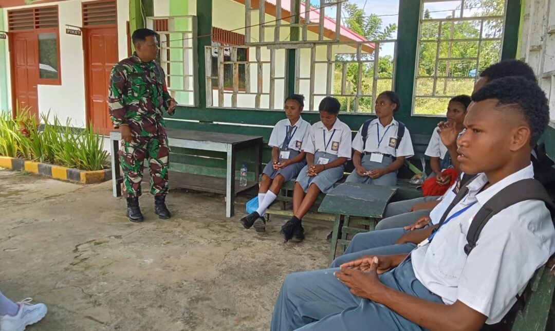 BIAK UTARA – Babinsa Koramil 1708-02/BU, Serka Asmaejar melaksanakan komunikasi sosial (komsos) bersama siswa-siswi SMA Negeri (SMAN) 1 Kampung Syokobye. Kegiatan ini dilaksanakan sebagai bagian dari upaya Babinsa dalam memantau perkembangan wilayah binaan, sekaligus membangun sinergi antara TNI dan pelajar setempat di Distrik Biak Utara, Kabupaten Biak Numfor, Papua, Kamis (4/9/2025).