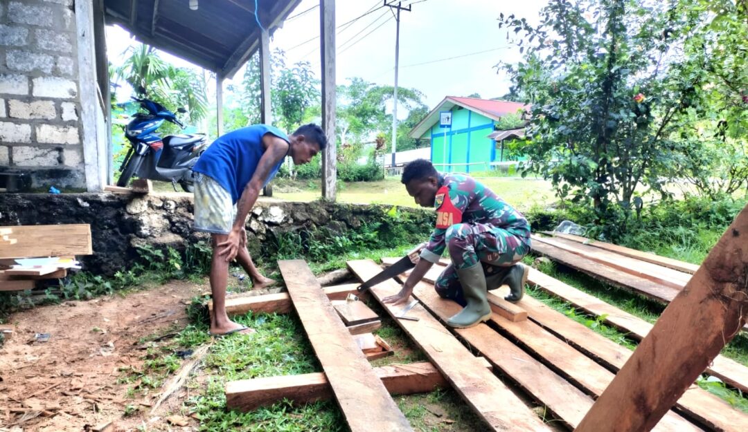 Kehadiran Babinsa di tengah masyarakat tidak hanya terbatas pada pelaksanaan tugas pengamanan wilayah, tetapi juga merupakan wujud nyata kedekatan dan kepedulian terhadap warga binaannya. Hal itu, terlihat dari semangat Pratu Omy Weya yang ikut bekerja bersama warga membantu pembangunan dapur milik salah satu warga binaannya.