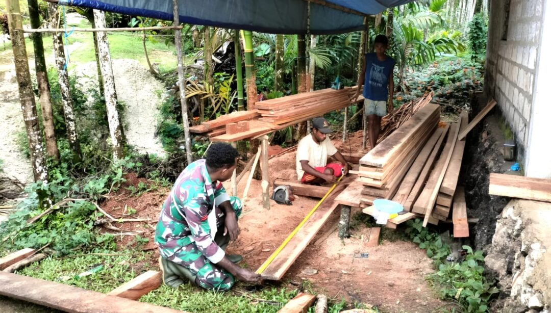 Lebih lanjut, Babinsa menambahkan bahwa pada kesempatan kali ini dirinya membantu proses pembangunan dapur milik keluarga Izak Kaisiepo. Meskipun hanya berupa tenaga, ia berharap kehadirannya dapat mempercepat pengerjaan dan meringankan beban warga.