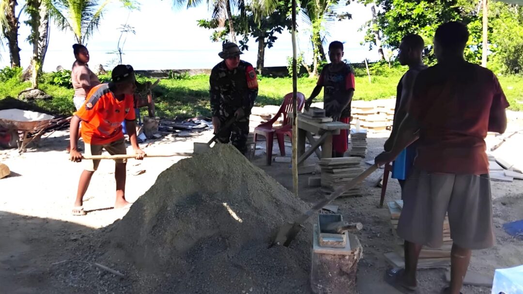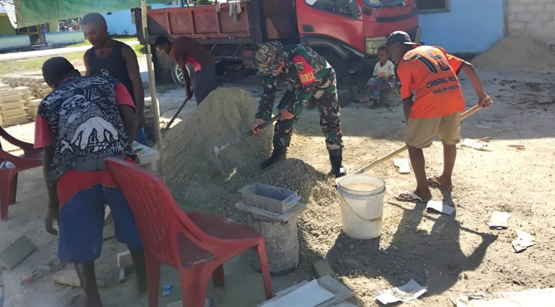 NUMFOR – Bentuk kepedulian terhadap warga binaan, Babinsa Koramil 1708-05/Numfor, Serka Sampurno ikut serta membantu proses pembuatan batu tela di Kampung Andai, Distrik Poiru, Kabupaten Biak Numfor, Papua, Selasa (16/9/2025).