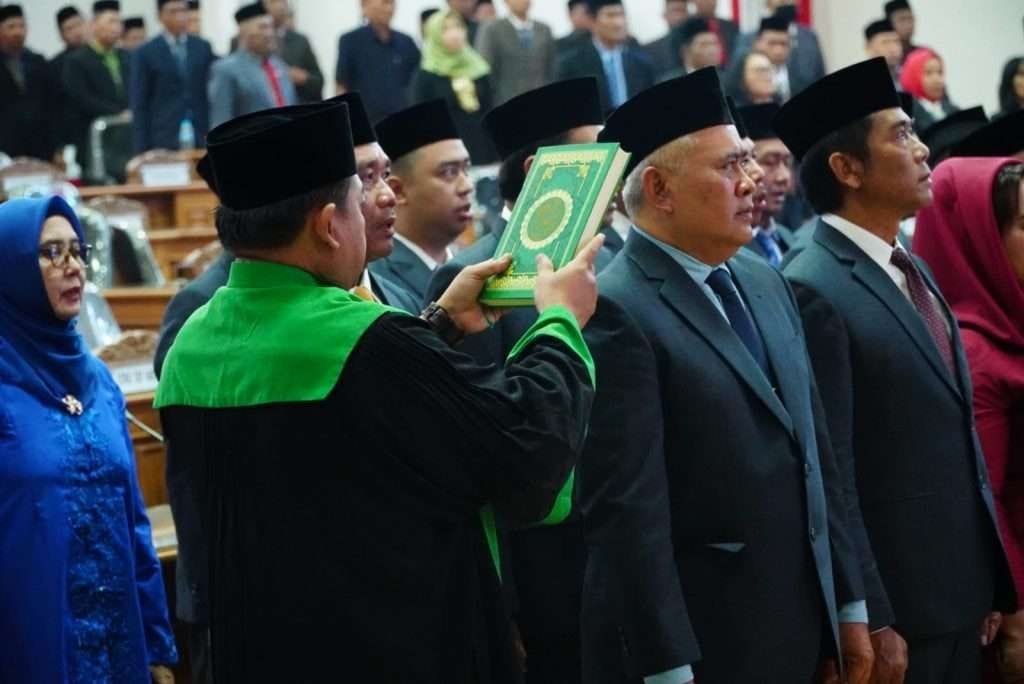 Kepala Pengadilan Negeri Kabupaten Madiun Indira Patmi S.H., M.H., mengambil Sumpah/Janji kepada 45 anggota baru DPRD Kabupaten Madiun hasil pemilihan pada Pemilu tahun 2024.