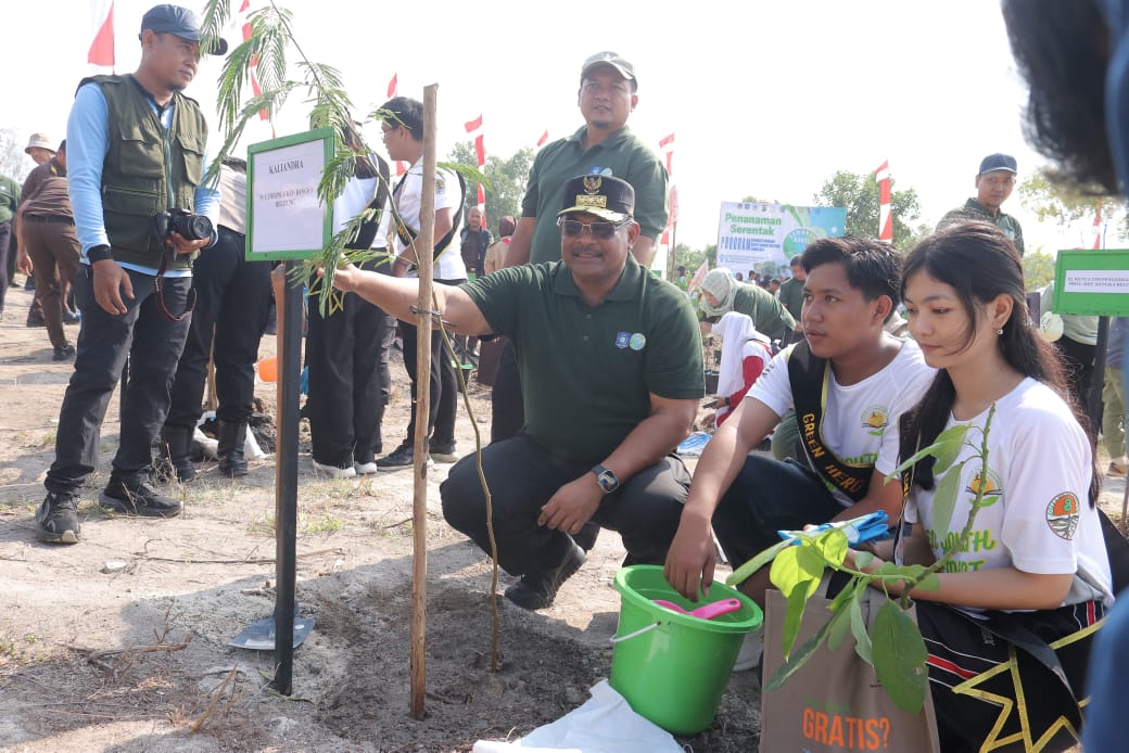Penanaman bibit pohon ini juga dilakukan secara serentak oleh Kabupaten/Kota se-Provinsi Kepulauan Babel hingga menyebar sampai ke desa-desa baik pada lahan yang telah disediakan maupun di lahan pribadi. Pj Gubernur Safrizal menyempatkan diri menyapa masing-masing kabupaten/kota secara virtual