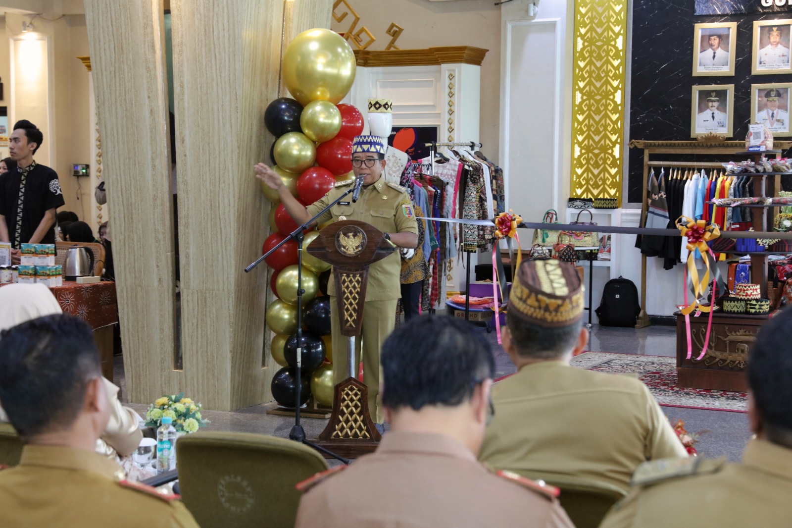 BANDARLAMPUNG, nirmedia.co – Pj. Gubernur Lampung Samsudin bersama Pj. Ketua Dewan Kerajinan Nasional Daerah (Dekranasda) Provinsi Lampung Ibu Maidawati Retnoningsih Samsudin meluncurkan Pojok Galeri UMKM di Lobby Kantor Gubernur Lampung, Bandarlampung, Senin (25/11/2024).