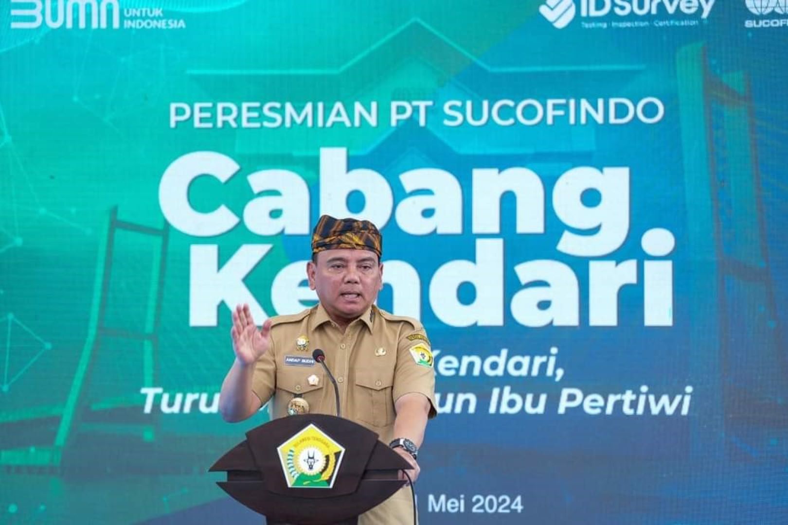 Dalam sambutannya, Pj. Gubernur mengucapkan selamat atas peresmian kantor cabang Kendari ini dan menegaskan pentingnya fasilitas ini dalam mendukung berbagai program dan aktivitas PT. Sucofindo.