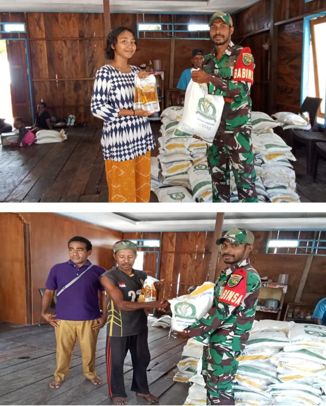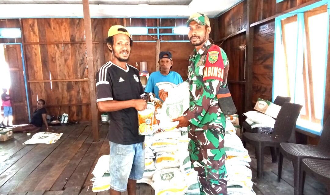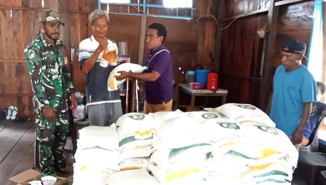 SUPIORI – Upaya mendukung kelancaran program pemerintah, Babinsa Koramil 1708-06/Supiori Utara, Sertu Risman Mambrasar melaksanakan pendampingan pembagian beras Bulog kepada masyarakat Pulau Mapia. Kegiatan ini berlangsung di Gedung Serbaguna Kampung Bras, Distrik Supiori Barat, Kabupaten Supiori, Papua, Selasa (21/4/2026).