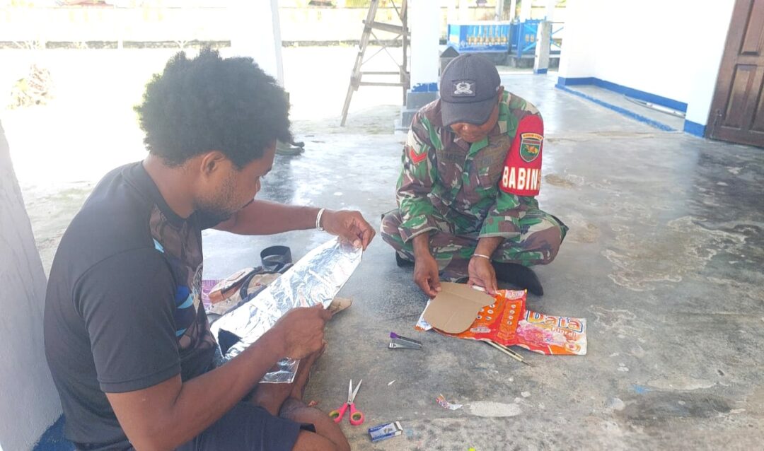 Sambut Natal, Babinsa Supiori Barat Bantu Warga Kampung Amyas Dekorasi Gereja