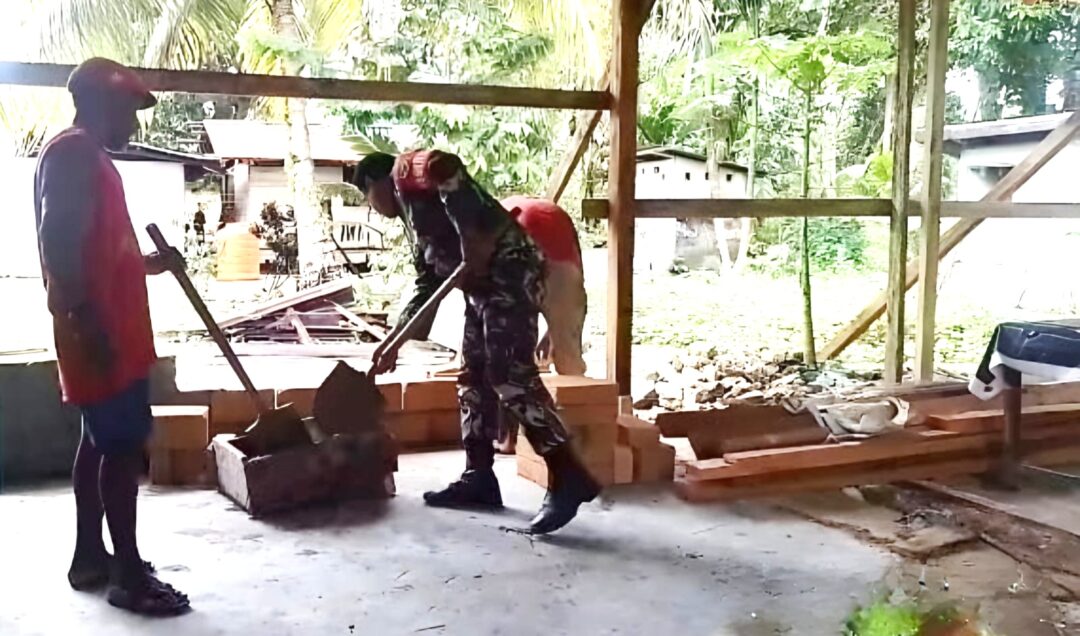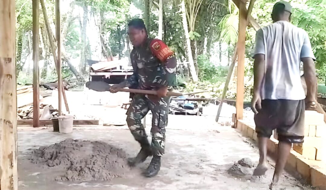 SUPIORI – Kepedulian terhadap masyarakat kembali ditunjukkan Babinsa Koramil 1708-06/Supiori Utara, Sertu Abraham Tunliu dengan membantu pembangunan rumah milik salah satu warga di Kampung Kobari Jaya, Distrik Supiori Utara, Kabupaten Supiori, Papua, Jumat (13/3/2026).