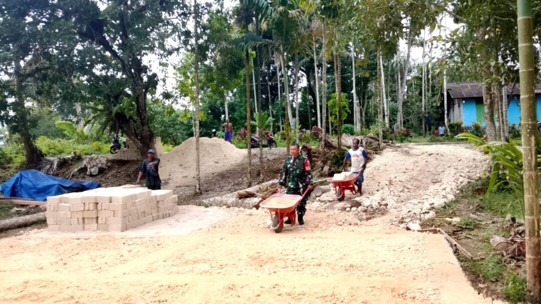 Kegiatan tersebut, dilakukan sebagai bentuk kebersamaan dan dukungan moril kepada warga yang sedang membangun tempat tinggalnya. Dalam pelaksanaannya, Babinsa bersama warga bergotong-royong memindahkan batu tela dan pasir ke lokasi pembangunan.
