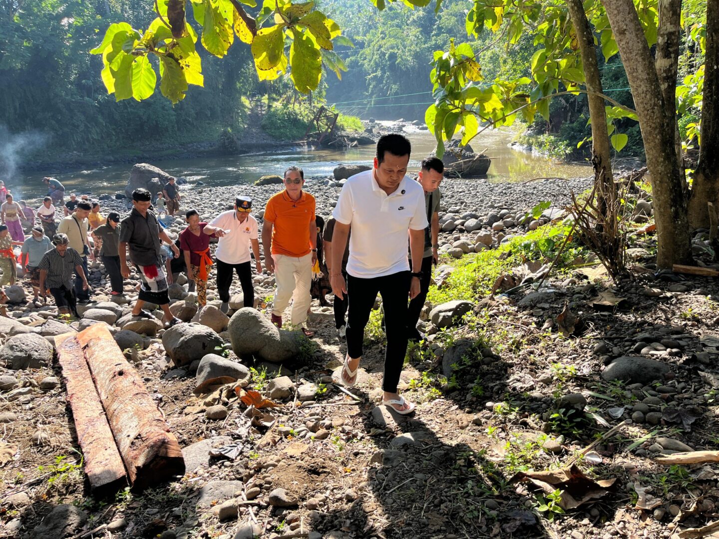 Jembrana – Bupati Jembrana, I Made Kembang Hartawan mengapresiasi semangat kebersamaan TNI dan masyarakat bergotong royong dalam mempercepat pembangunaan jembatan garuda di wilayah Kecamatan Mendoyo, Kabupaten Jembrana.
