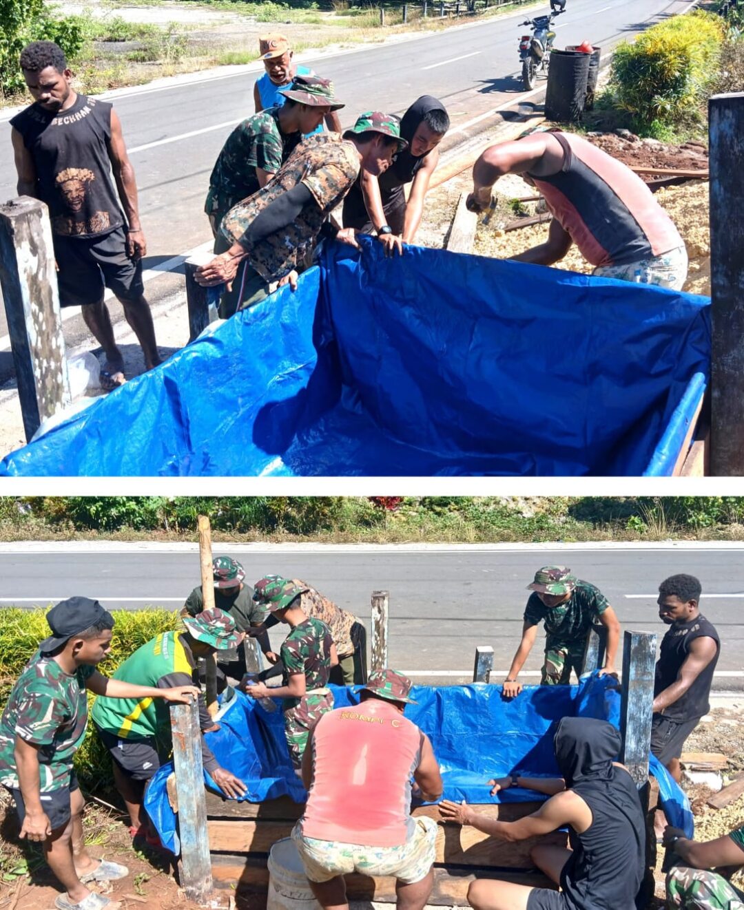 Salah satu kendala utama yang dihadapi, adalah keterbatasan air bersih di lokasi pembangunan. Untuk mengatasi hal tersebut, Satgas TMMD berinisiatif membuat bak penampungan air sederhana agar pekerjaan tetap bisa berjalan.