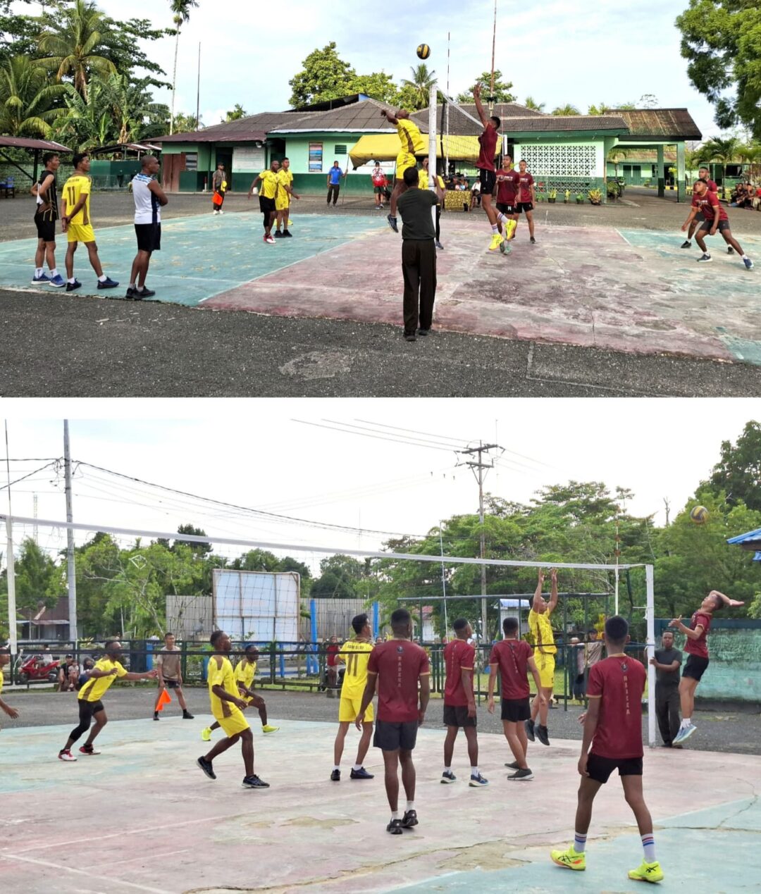 BOLA VOLI: Sambut dan meriahkan HUT ke-56 Kodim 1708/BN, Kodim 1708/BN gelar pertandingan bola voli di lapangan voli Koramil 1708-01/Biak Kota, Jalan Sriwijaya, Distrik Samofa, Kabupaten Biak Numfor, Minggu (12/4/2026). (Foto: Penerangan Kodim 1708/BN)