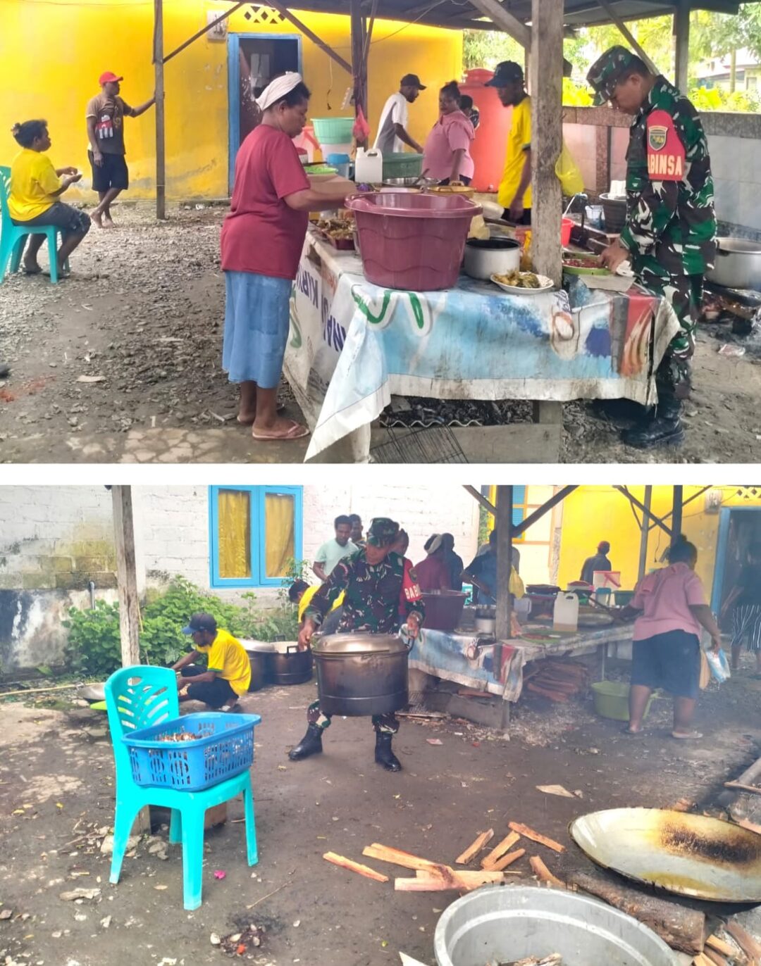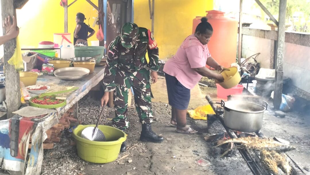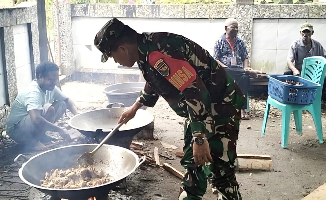 SUPIORI – Kebersamaan antara aparat TNI dan masyarakat kembali terlihat melalui kegiatan yang dilakukan Babinsa Koramil 1708-04/Supiori Selatan, Serka Semmi Uhing, yang turut membantu proses memasak dalam acara syukuran ulang tahun (ultah) anaknya Arnold Warikar, di Kampung Fanindi, Distrik Supiori Selatan, Kabupaten Supiori, Papua, Kamis (27/11/2025).