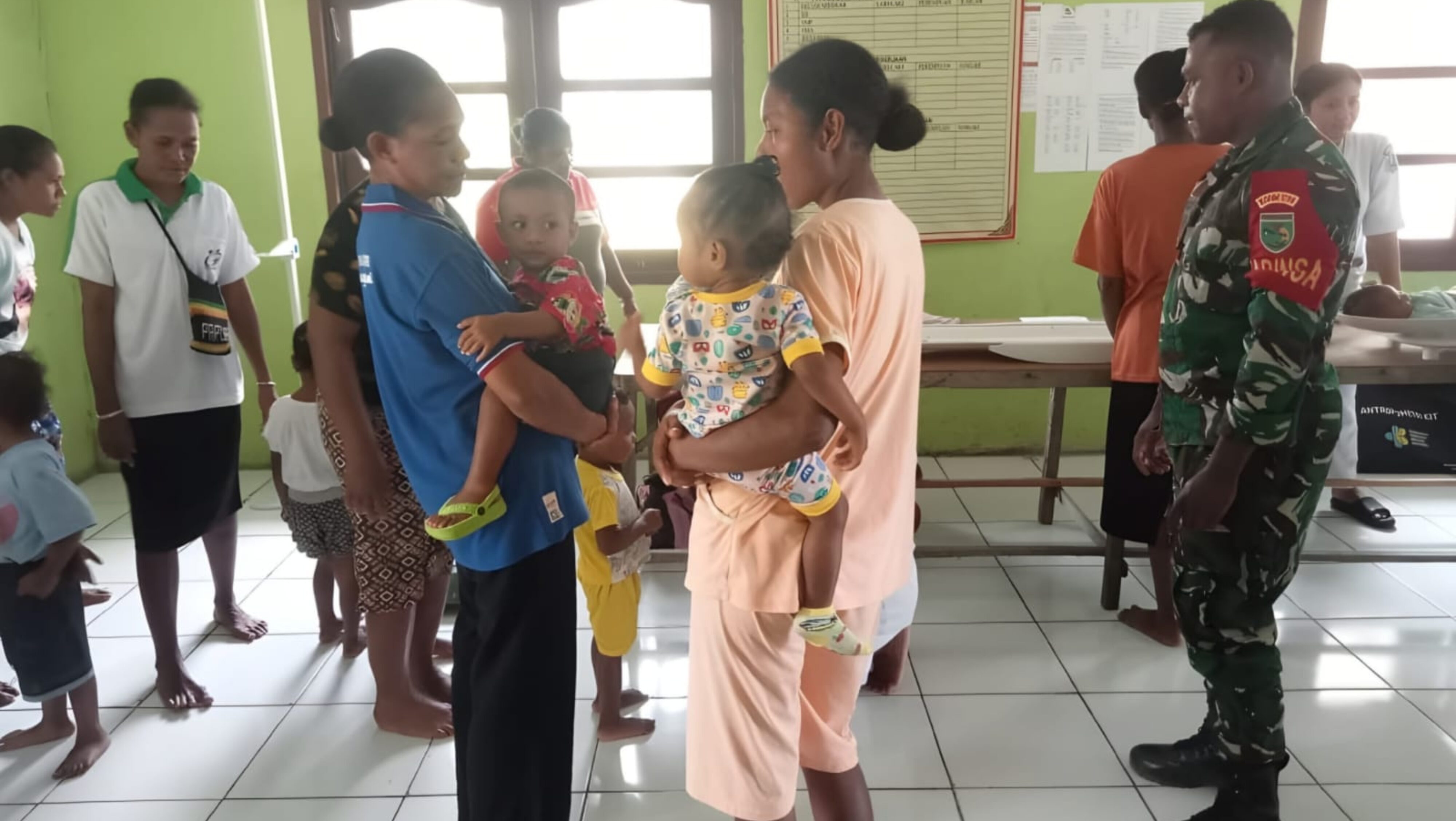 WARSA – Babinsa Posramil 1708-02/Biak Utara-Warsa, Serda Ikbal Hobrow ikut serta mendampingi kegiatan posyandu balita…