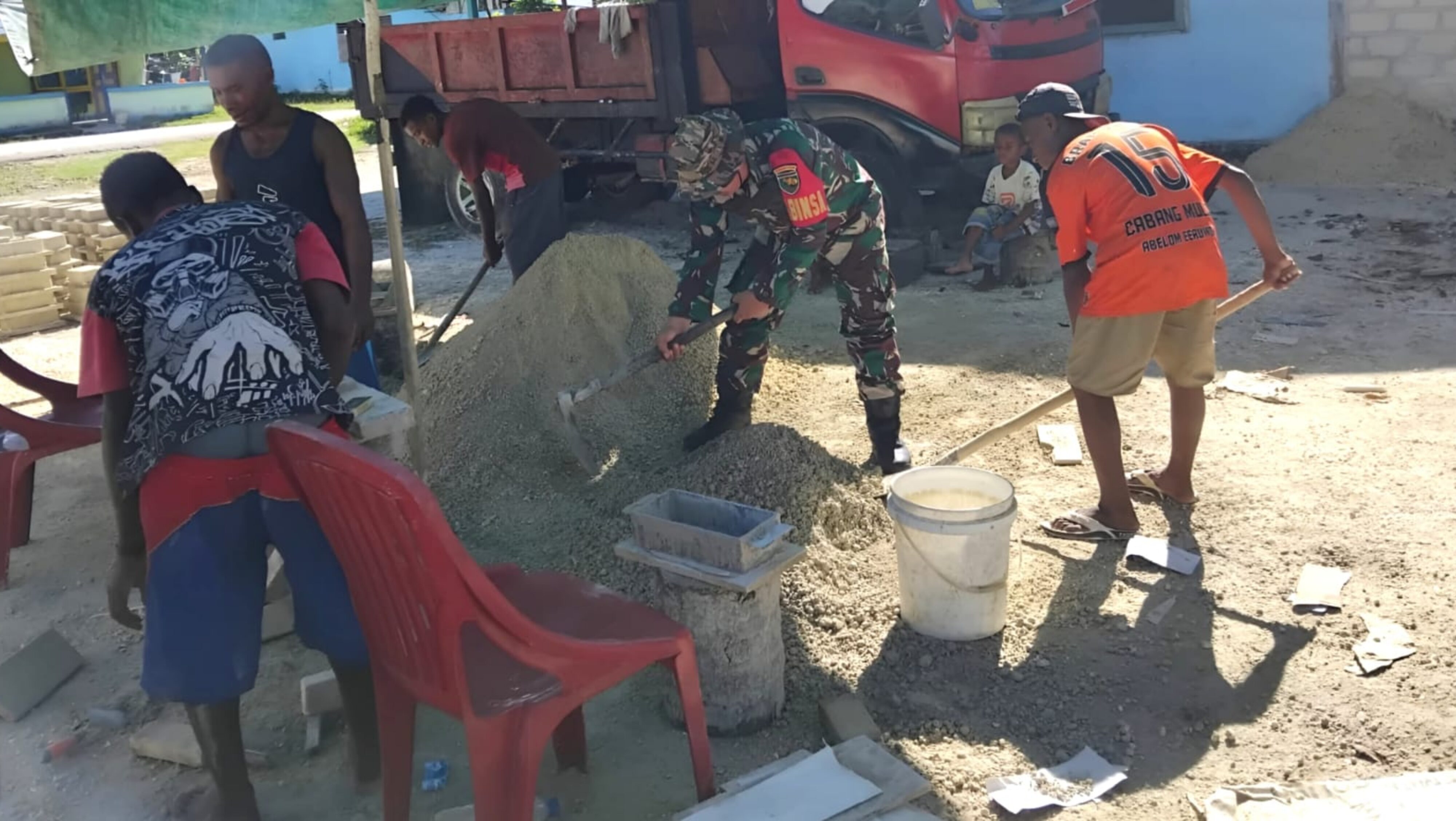 NUMFOR – Bentuk kepedulian terhadap warga binaan, Babinsa Koramil 1708-05/Numfor, Serka Sampurno ikut serta membantu…