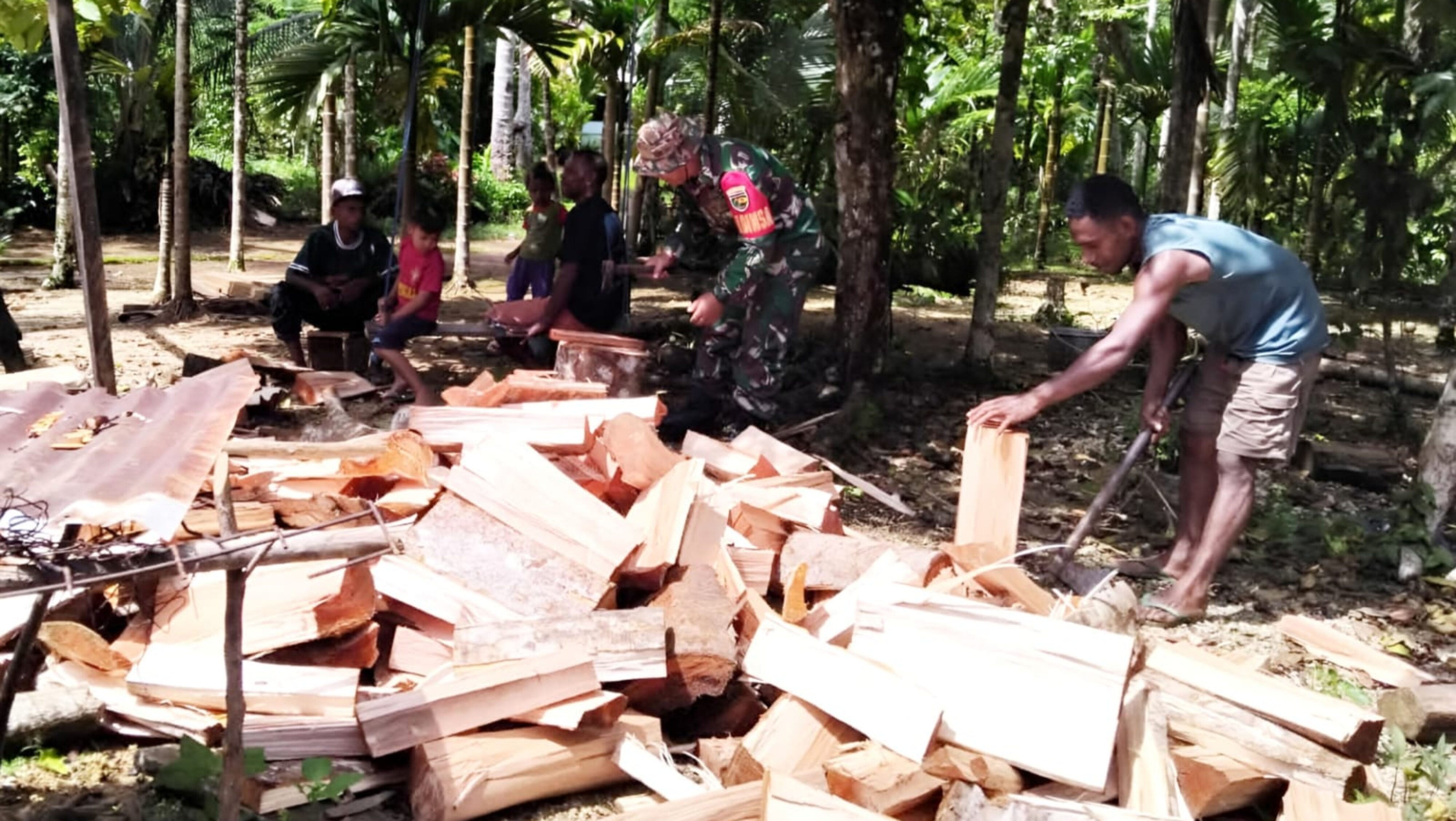 NUMFOR – Babinsa Koramil 1708-05/Numfor, Serka Sampurno bantu warga membelah kayu bakar untuk kebutuhan dapur…
