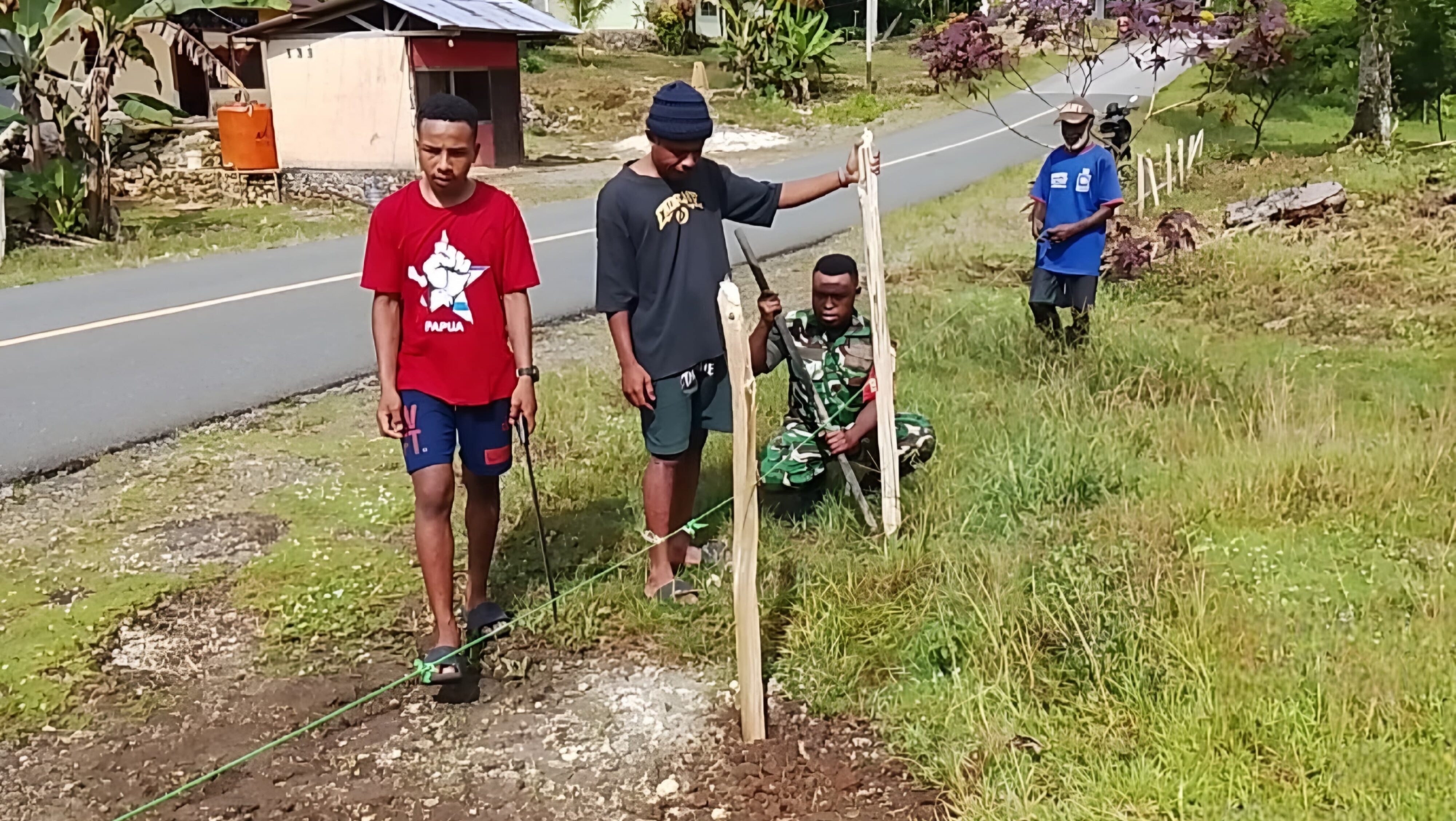 BIAK UTARA – Babinsa Koramil 1708-02/Biak Utara, Serda Alfret Foom ikut membantu warga dalam pembuatan…