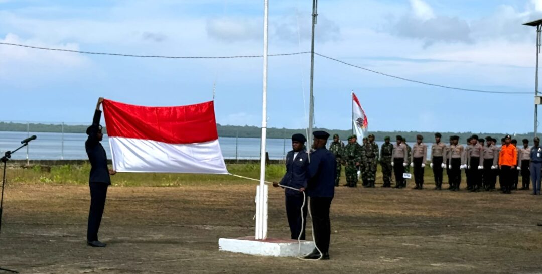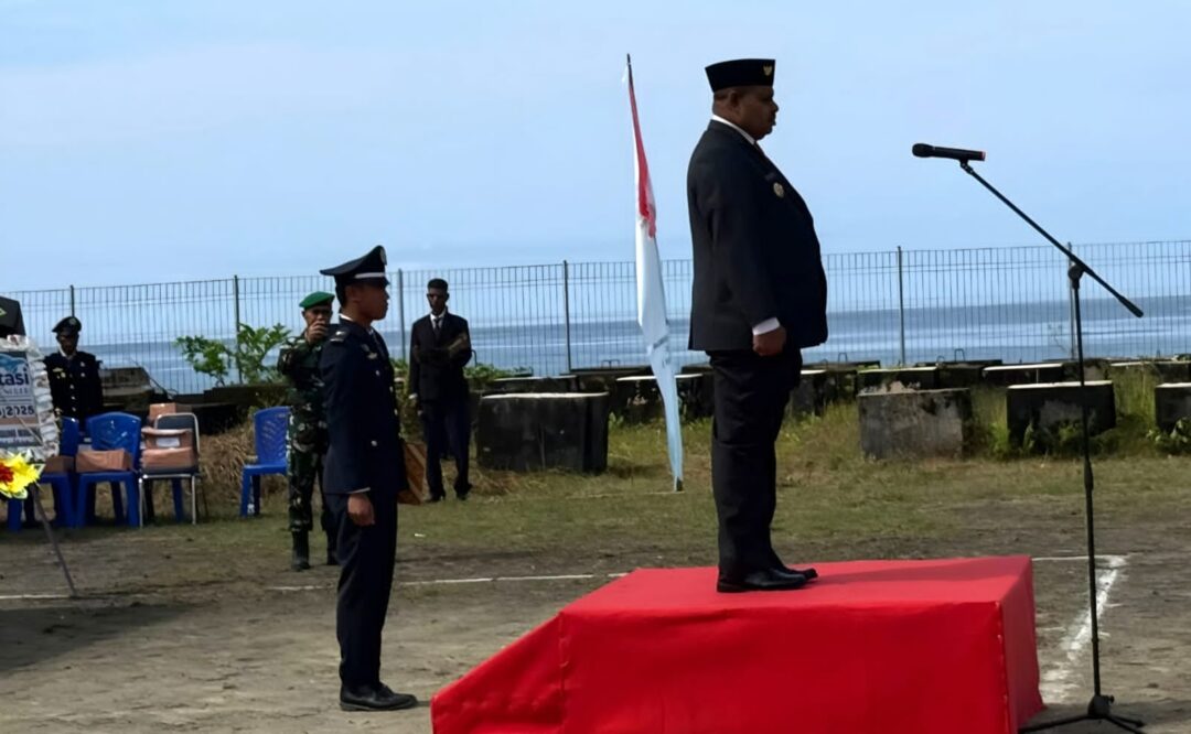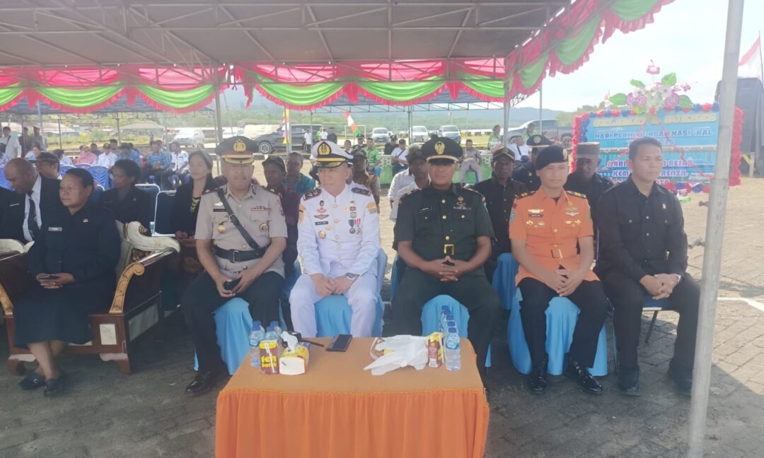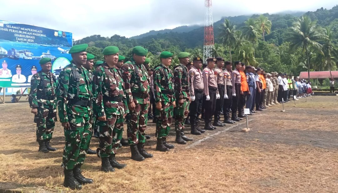 SUPIORI – Wadanramil 1708-04/Supiori Selatan, Lettu Inf Edward Lewerrissa menghadiri upacara bendera dalam rangka memperingati Hari Perhubungan Nasional (Harhubnas) 2025 yang digelar di Pelabuhan Korido, Kampung Fanindi, Distrik Supiori Selatan, Kabupaten Supiori, Papua, Rabu (17/9/2025).
